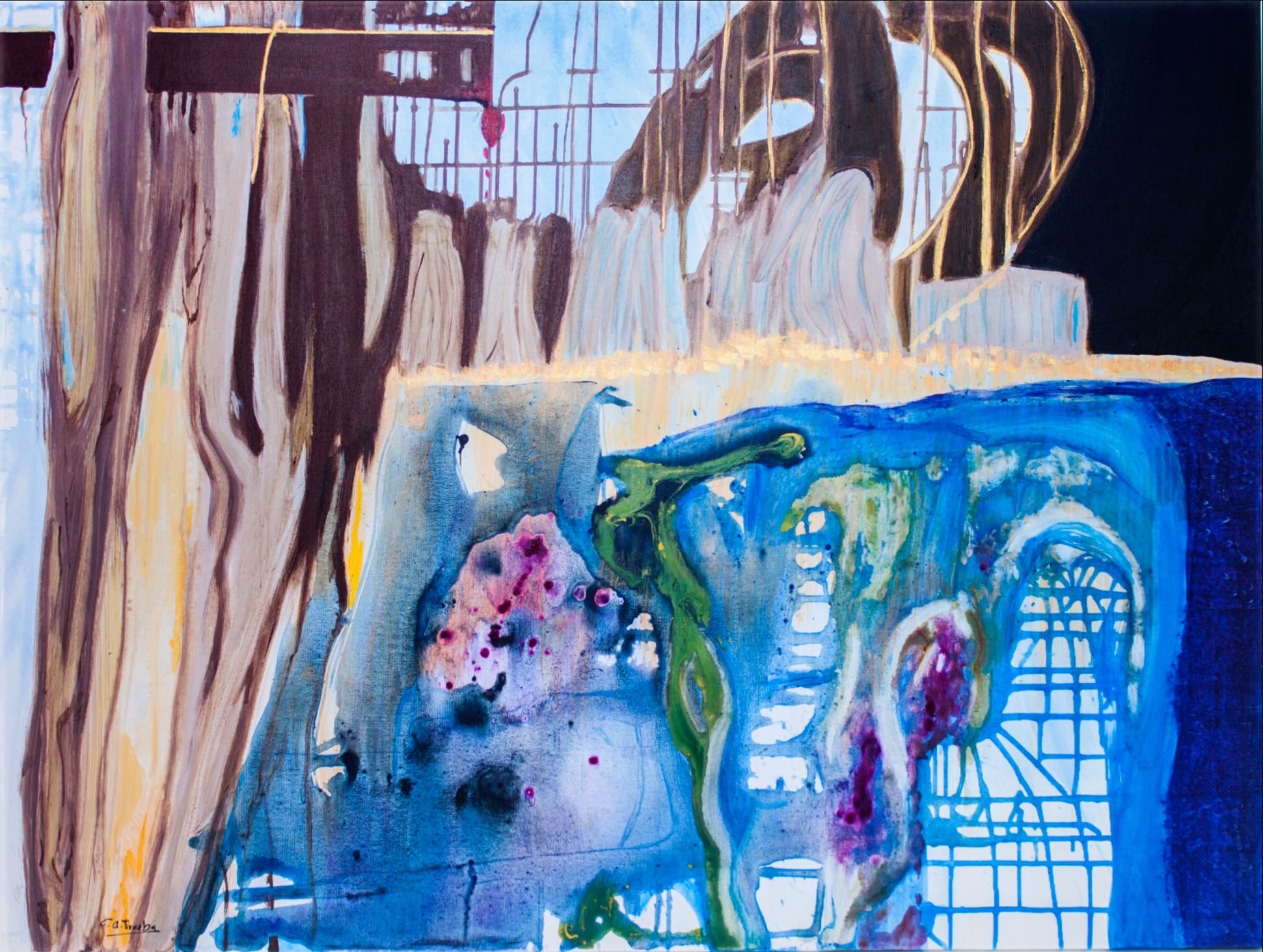 Obra original de C.A. Trueba pintada en acrílico sobre lienzo de 100 x 130 cm. Sus obras se mueven entre la abstracción viva y el gesto figurativo, donde aparecen formas y trazos que funcionan como metáforas del estado de ánimo, y colores que cambian de intensidad según el momento emocional que los inspira.